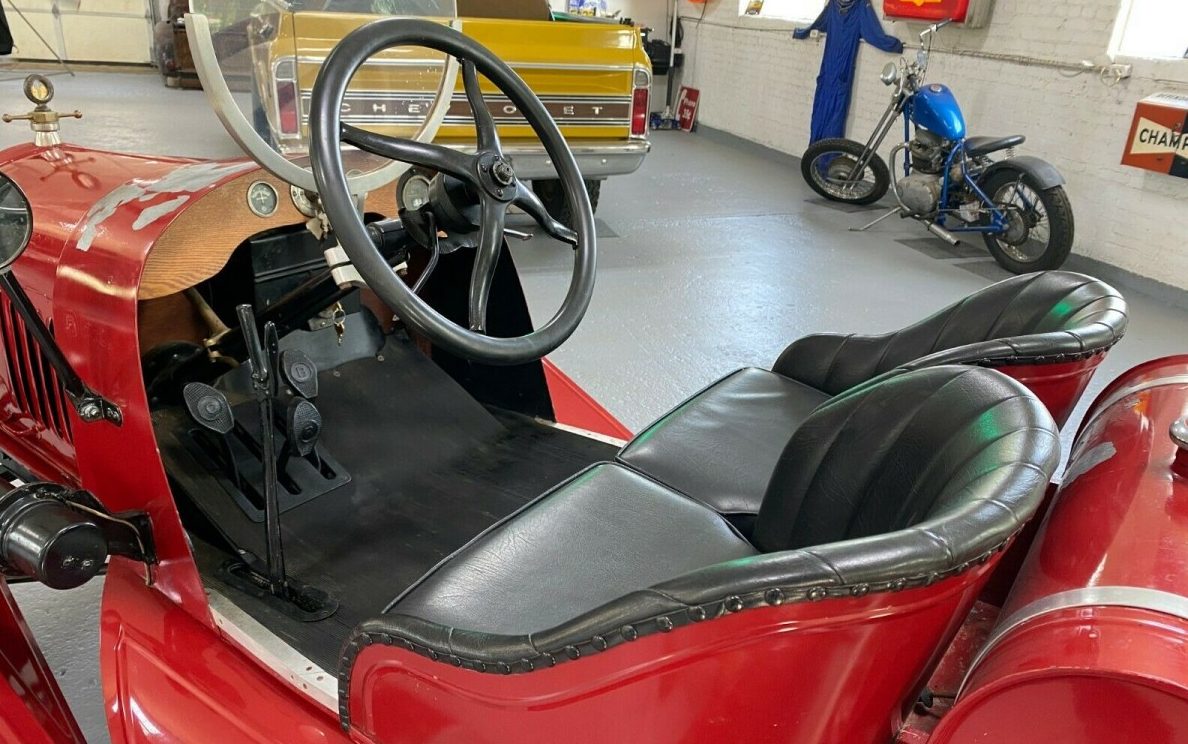 The seller tells us this early Ford muscle car has been sitting in a climate-controlled garage for twenty years, but it has had a recent maintenance check-up and it runs strong on all four cylinders of its 177 CI, in-line engine, good for about 22 HP. The seller does not elaborate if this Speedster has undergone any of the usual modifications as suggested in Speedsters.com. Nevertheless, the engine and its two-speed transmission apparently work as intended.
