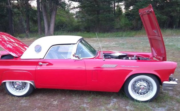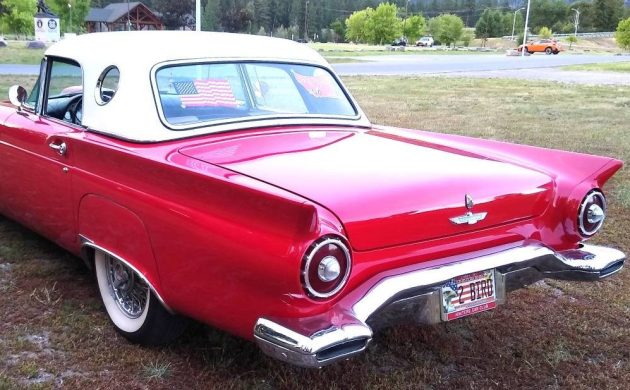 In a a super clean engine bay, you’ll find the optional D Code Thunderbird 312 Special V8 engine. 67,309 miles are shown on the odometer (no mention if they are the true milage or has a “1” in front of it) and the 312 is mated to a floor-mounted Ford-O-Matic automatic transmission, which was a pricey $215 option back then. This classic ’57 Ford Thunderbird is calling Libby, Montana home these days and is listed for sale here on craigslist for $35,000. I’d like to thank Curvette for spotting this beautiful red bird and sending it our way (and causing my heart to skip a beat…again).