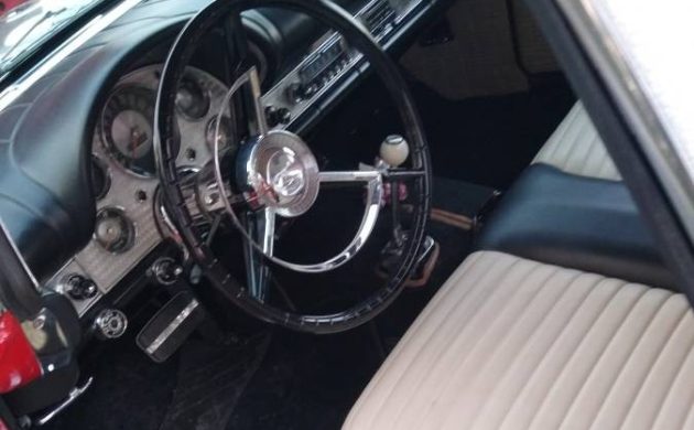 Up front, the ’57 T-Bird received a reshaped front bumper and a larger grill and the rear was redesigned and made longer to provide room for both the spare tire (bye bye Continental kit) and luggage. It also sprouted modest, angled tail fins and new round tail lights that incorporated backup lights in the center. Under the hood, buyers had the choice of more powerful engines, including the E-series (270 or 285 horsepower), and the F-series with a Paxton-McCulloch supercharger that was rated up to 340 horsepower. This example was treated to a frame-off restoration in the 1990’s and although the seller says the Flame Red paint is showing some age, it still presents well. Other pluses include no rust or body damage, a Colonial White removable hardtop as well as a soft top, glistening chrome bumpers, trim, and aftermarket Kelsey Hayes wire wheels, plus period-correct whitewall tires. It’s just a great example of a good-looking ’57 Thunderbird in a classic color combination.