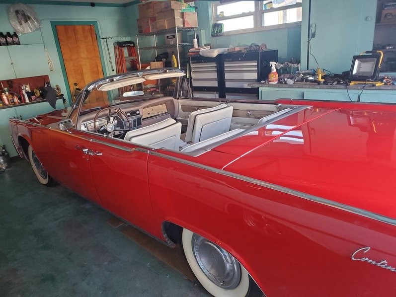 A buddy has a red one of these, his grill looks a bit newer, he just bought a 59 Caddy convertible, and is thinking of selling his Lincoln convertible, it’s in nice shape. He also has two 1961 Chrysler 300Gs, one super nice, and the other a roller body shell project.