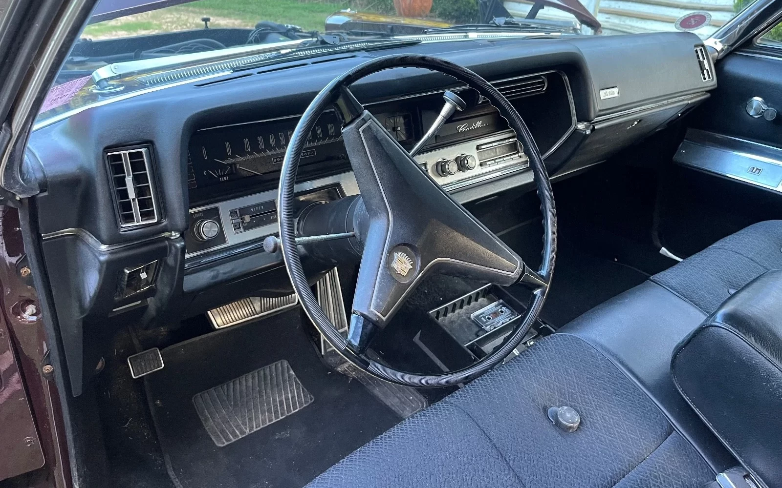 While 1967 ushered in crisp new styling for the Cadillac line, it was the final year for the 429-cubic-inch V8, which produced 340 horsepower and 480 lb.-ft. of torque through a Rochester QuadraJet and a 10.5:1 compression ratio. Air-conditioned cars such as this one had a standard 3.21:1 rear axle ratio for a little more urge off the line when the air was on full blast down in Boca Raton. The seller says that the air conditioning blows cold, but it needs a charge once a year, so some maintenance is in order. The engine compartment as a whole could use a good cleaning, if not a thorough detailing. The master cylinder looks crusty enough that I’d be having a look at the entire braking system; luckily, Cadillacs had been using dual-circuit brakes since 1962, and they were mandated by the government for 1967.