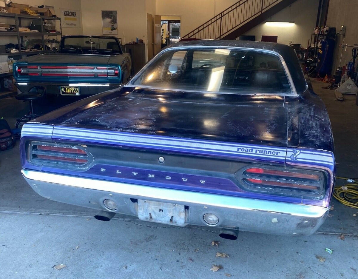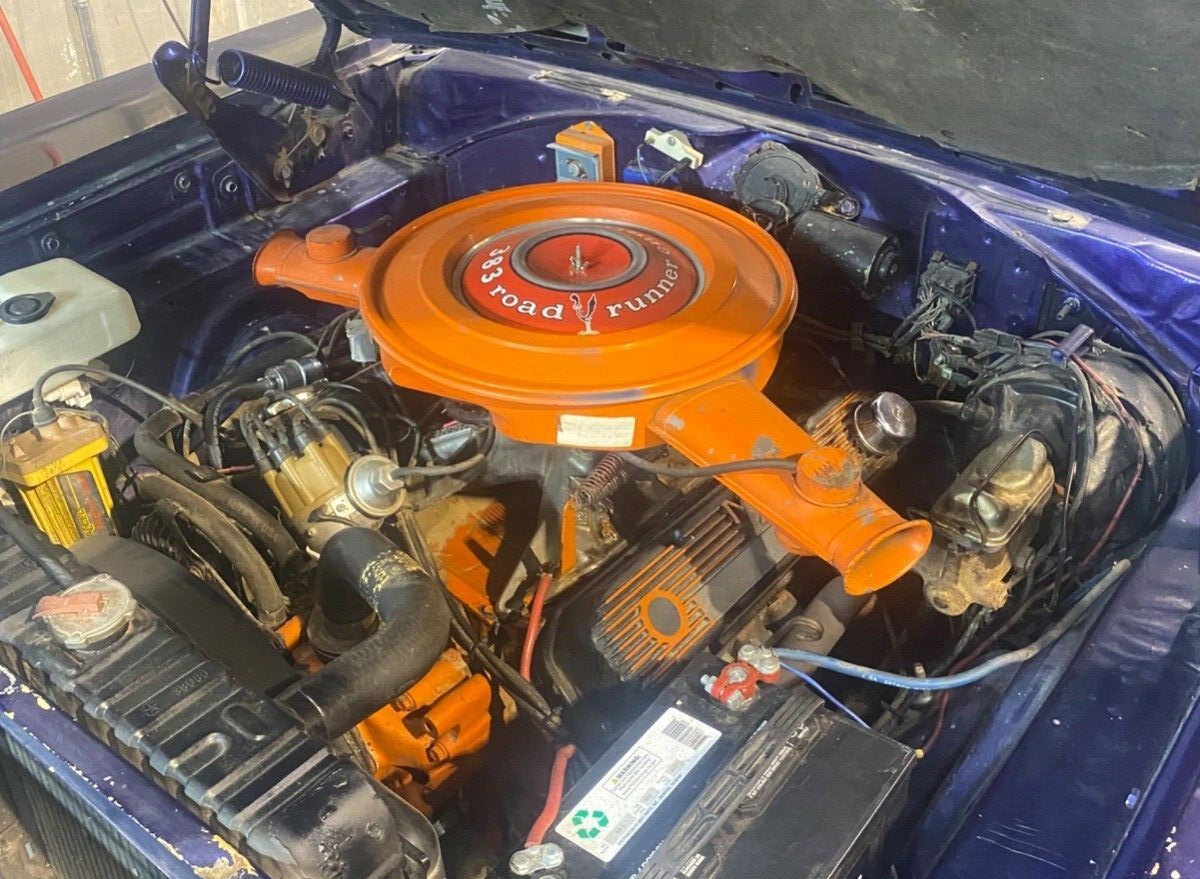 As the story goes, this Plymouth has spent most of its life in the dry U.S. Southwest, principally New Mexico. As a result, it continues to be a rust-free automobile. We’re told that the party who owned the car in the 1990s treated it to a restoration, but then passed away. So, the Road Runner then spent some time outside which put a hurting on the paint and vinyl top. We’re told the car is purple and if you look at it just right, that’s true. I thought it was black at first. But it’s too deep a purple to be the Hi-Impact In-Violet that was available when the car was new (Dodge called that hue Plum Crazy, a cooler name).