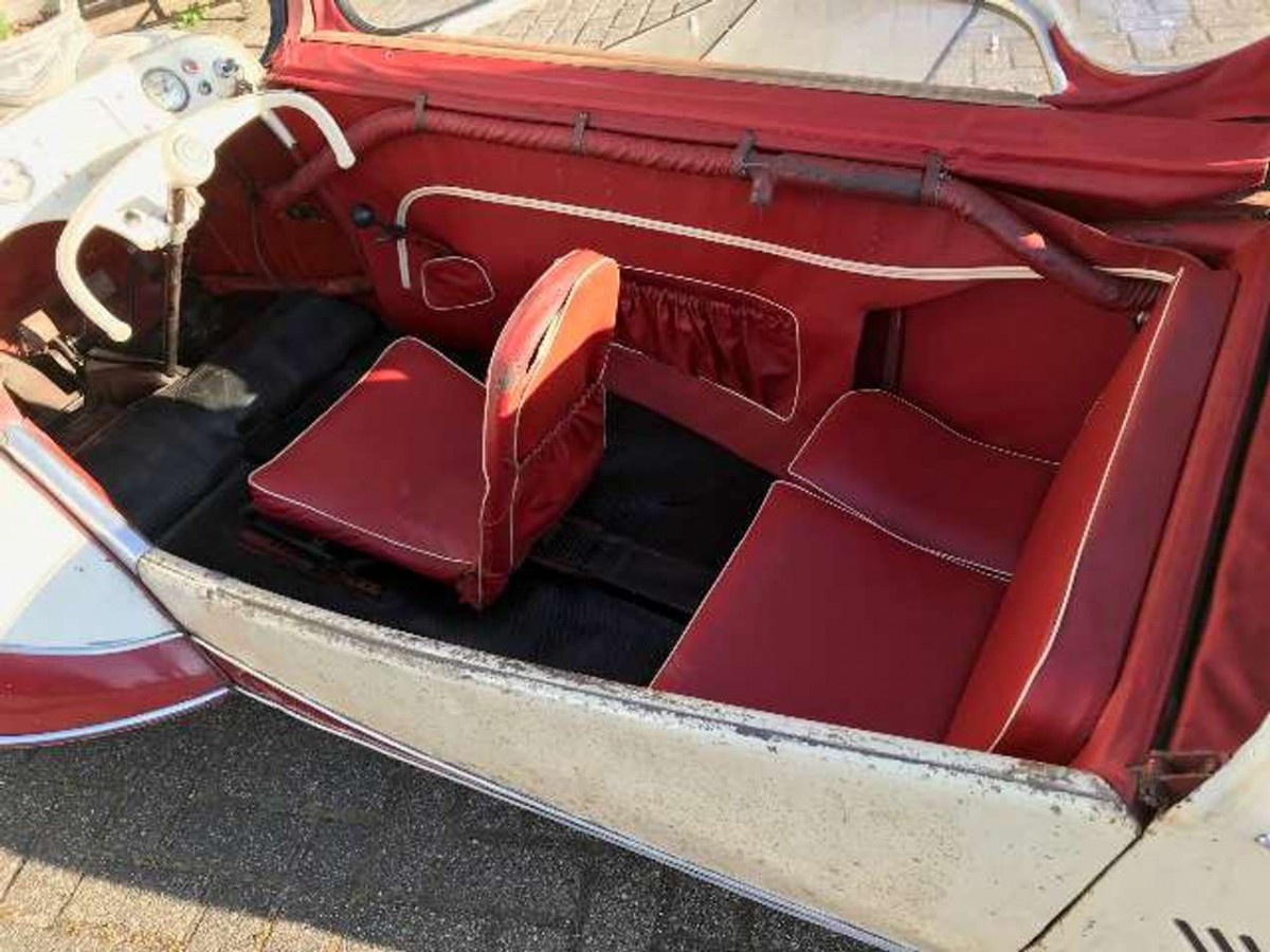 Following the cessation of hostilities in World War II, companies like Messerschmitt found themselves in a position where they were no longer permitted to produce planes of any description. For this company that was a potential body-blow, because aircraft production represented their bread-and-butter. As a result, the company collaborated with invalid scooter designer and manufacturer Fritz Fend to delve into the world of automobile manufacturing. Their first offering was the KR175, but many potential owners found the operation of that model to be confusing. In 1955, the (slightly) more conventional KR200 was released, and while it rolled on the previous model’s frame, it featured many upgrades to both the body and the mechanical components. One thing that didn’t change was the body width. The KR 200 is tiny, and some journalists have compared it rather harshly (and unfairly) with a bathtub on wheels. This particular KR200 might look a bit rough on the surface, but its issues seem to be purely of a cosmetic nature. Rust seems to be non-existent, while the wonderful canopy is in nice condition. The external trim looks quite good, and the KR200 wears the Messerschmitt badge proudly on its nose. This is an important factor because Messerschmitt sold its automobile manufacturing enterprise to Fend in 1956. From that moment onwards the KR200 wore the badges of “Fahrzeug- und Maschinenbau GmbH Regensburg,” or FMR.