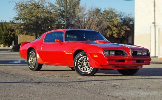 This 1977 Pontiac Trans Am stands out in its in Code 75 red paint and factory aluminum snowflake wheels. TJ found this Trans Am here on Facebook Marketplace. The car is located in Odessa, Texas which is in West Texas next door to Midland. The car has been listed for 2 weeks and the seller is asking $39,900. The seller states that the car has less than 33K miles. What most car enthusiasts are unaware is the Pontiac used the Oldsmobile L80 403 cubic inch V8 engine to power the Trans Am in 1977 and 1978 in addition to 1979.