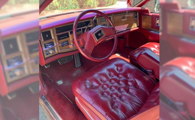 Beautiful matching red leather greets the passengers, and I guarantee this is a comfortable car to both drive and ride in. There really doesn’t seem to be a flaw inside other than some light wrinkles on the driver’s seat. The seats look fantastic overall. Since the tenth-generation Eldorados were made in Linden, New Jersey, the trunk compartment can easily hold four adult bodies. I’m kidding, that wasn’t funny, I love New Jersey. The Biarritz package adds some nice luxury touches, and this car really looks like a winner to me.