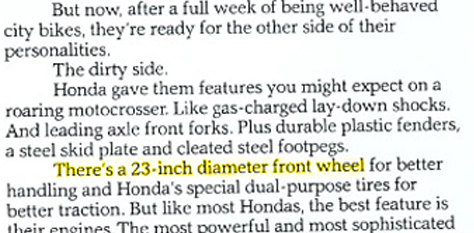 “The 1981 XL250S was the last year to have the unique 23-inch front wheel…” (wiki)
