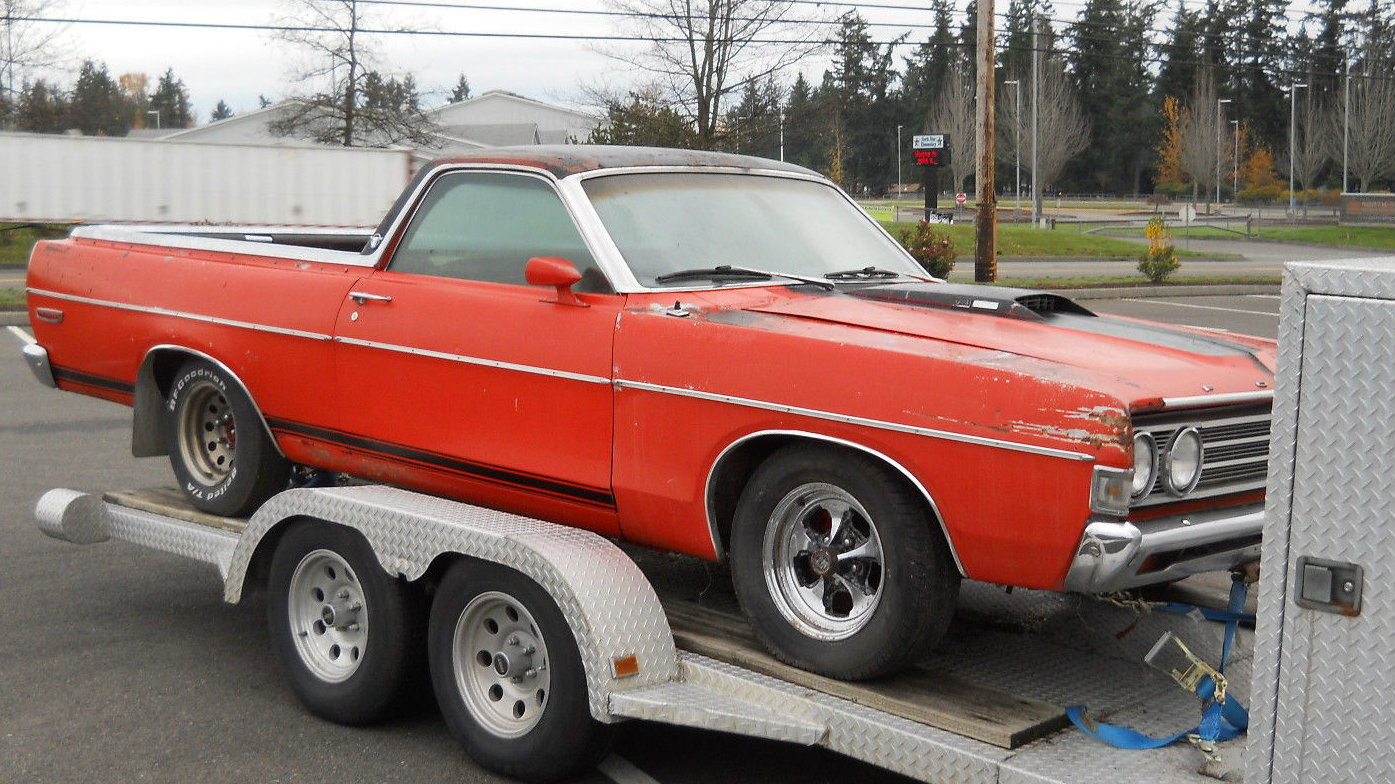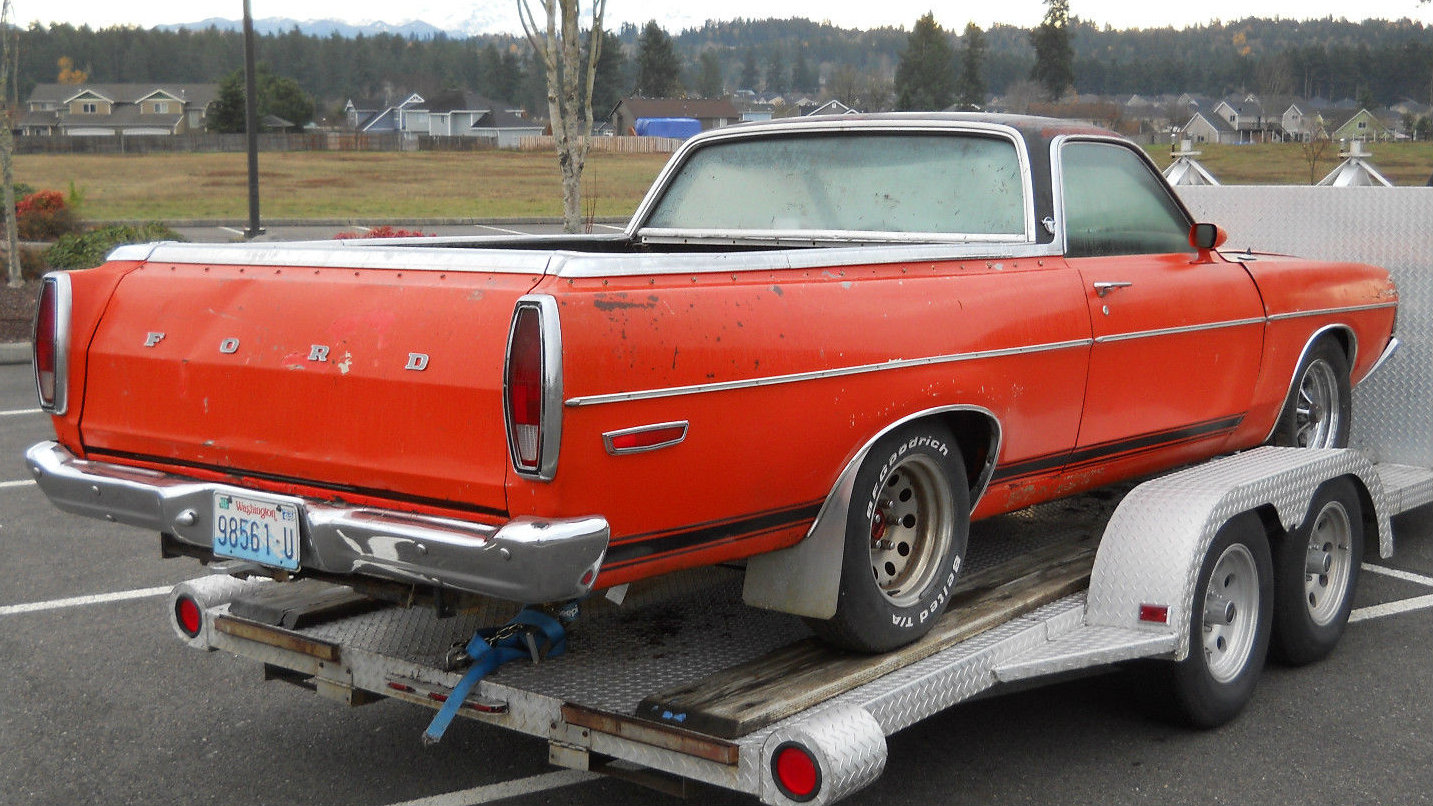 Ah, the Rio Grande! Not the river, or the movie, or the songs, but the Ranchero–the Ranchero? Yes, Ford created a very limited edition (400-900 units, depending on which source you believe) of the Ranchero, with some really neat features. One is now for sale here on eBay — obviously being flipped as it’s still on the trailer, but you might be interested anyway. It’s located in Puyallup, Washington and has a buy it now price of $6,350 but bidding starts below $5,000 and there’s no reserve.