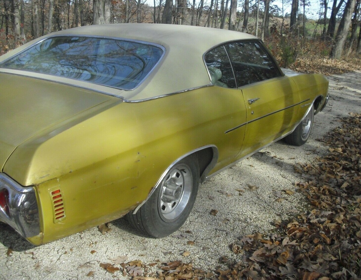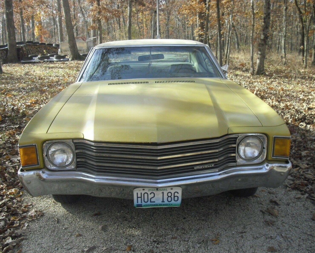 Eight years after being introduced as an intermediate to the full-size Impala/Bel Air/Biscayne and the compact Chevy II/Nova, the Chevelle was still a big seller. For 1972, more than 630,000 cars were sold (including El Camino and Monte Carlo, part of the same family), with 184,500 of them being a Malibu Sport Coupe with a V8 like the seller’s car. The 1971-72 models were easily distinguishable from their predecessors by their single headlights (instead of duals) and big, round rear taillights.