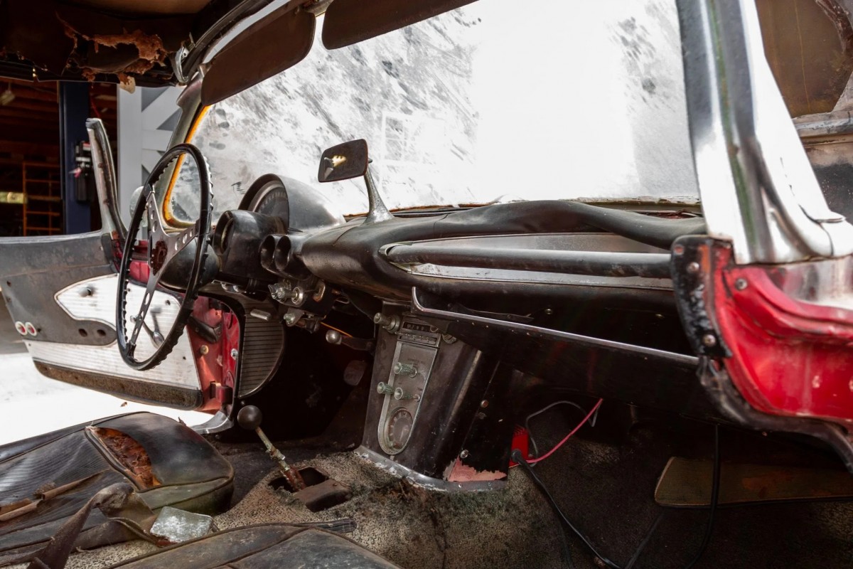 This car was bought in 1965 by the seller’s father, and at that time the 327 currently installed had already been stroked to 369 cubic inches. In the intervening years, the engine was given a new cam, headers, and intake manifold, with a new dual exhaust. The seller reports that the engine hasn’t been started in 20 years or so, but that he doesn’t believe that it’s seized.