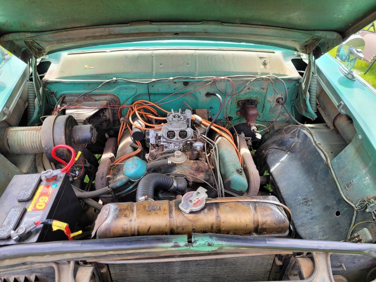 Same color combo as the first car I can remember, my parents 55 Olds Eighty Eight convertible. Turquoise and white with same interior colors. Thank god there’s no continental kit on this car, just fix its mechanical needs and clean up the interior and keep it othe road.