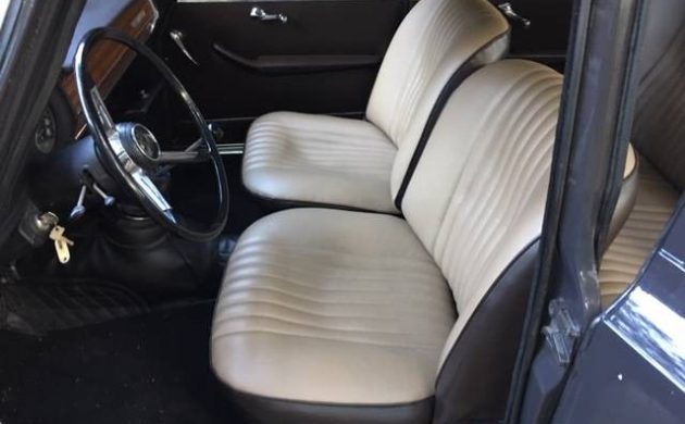 Here’s another view of the interior, with the wood-grain dash slightly more visible. When the Giulia first arrived on the scene, its gearchange was on the column, but by 1964, floor-shift became available. The long throw takes a few tries to master and don’t be surprised if second gear gives a light crunch, but once you acquire the knack, you won’t stop grinning. Yes, you can find a cheaper TI but given the mileage and history of this example – and if the paint question can be cleared satisfactorily – I think the asking price is on the button; here’s a comparable car that sold about two years ago for $27k. Are you tempted by this sporty Italian?