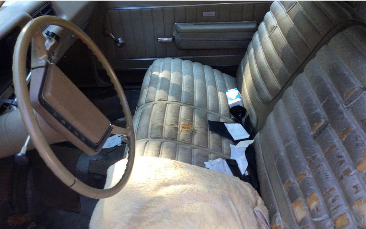 Moving on to the interior, we find typical 50-year-old upholstery, ripped and worn in places, along with a cracked steering wheel and a headliner struggling with gravity. All correctable and certainly not a show-stopper. The seller makes no reference to the structural condition of the body, floor or frame through the images of the fenders, doors, rocker panels, and quarter panels show no sign of a problem. Being a GM “A” body of this generation, I would like to know about the floors, rust, to some degree, is typically a problem.