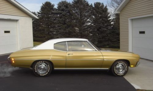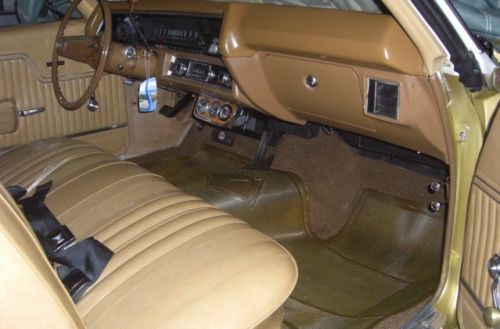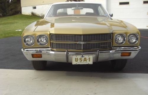 Wow! My Father-in-Law had an almost identical car. Gold, saddle interior with bench seat, 350 Malibu, auto on the column. His was a ’71 though, and it had a black vinyl top. Original owner car, well kept, no modifications ~ basically like this one.