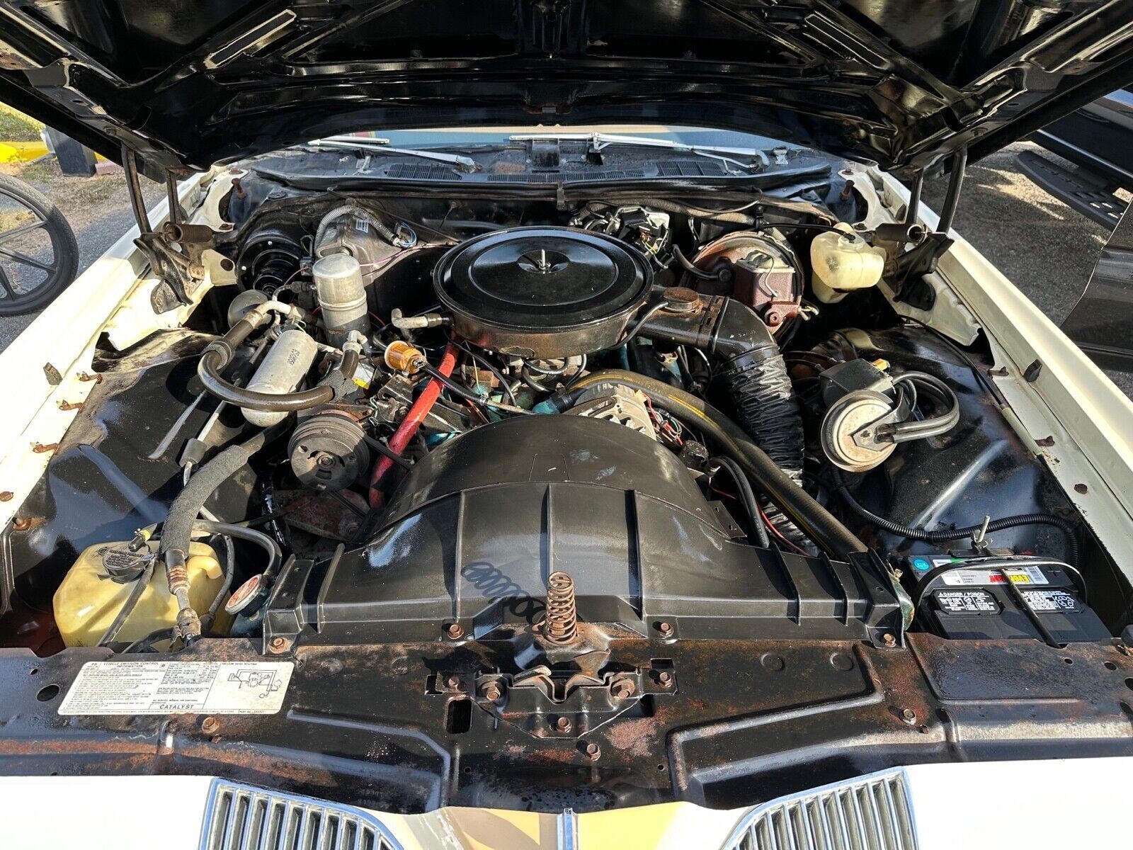 The interior of older classics can often reveal a history of neglect or abuse, especially if cloth trim is part of the story. This Grand Prix features Beige cloth, and its condition is remarkably good. There might be some minor wear on the outer edges of the front seats, but there are no problems justifying a retrim. The back seat is in good order, and the carpet only shows slight deterioration below the driver’s left foot. The vinyl appears to be starting to lift on the leading edge of the driver’s armrest, but a dab of glue should set that straight. The Pontiac’s luxury car credentials shine through courtesy of air conditioning, power windows, power locks, a six-way power driver’s seat, a tilt wheel, and AM/FM radio.