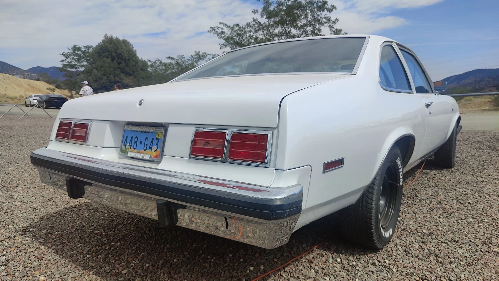 First thing I’d put on is the full covers that 90% of dealer-stock disco Novas came with. Next would be some period-correct side rub strips, preferably with tan vinyl inserts to pick up the interior color. White stripe tires would come when the existing ones wear out. Just a hint of Brougham without jumping all the way in.