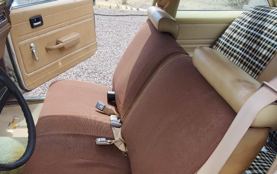 Well, almost perfect. The seller reupholstered the front seat, and although it appears to be in good shape, it doesn’t match the Nova’s original and wild plaid cloth that can still be seen on the rear bench. Too bad.