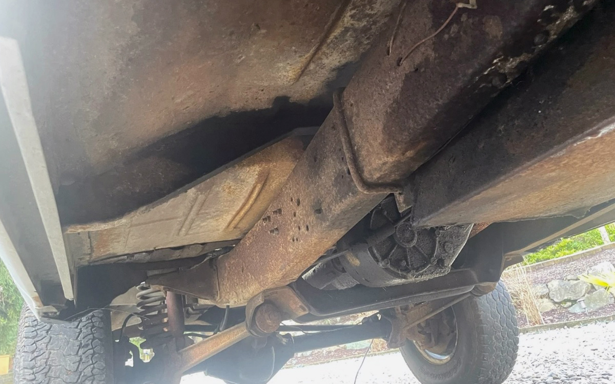 What a good-looking and solid-looking truck. There’s a bit of surface rust as you can see, and the underside shows the usual surface rust as it would if it lived almost anywhere other than someone’s living room for the last 49 years. The Dentside Ford pickups for the fifth generation were made from 1972 for the 1973 model year until the end of 1979 for the U.S. market. Since it needs tires, I’d get regular steel rims, but that’s just me.