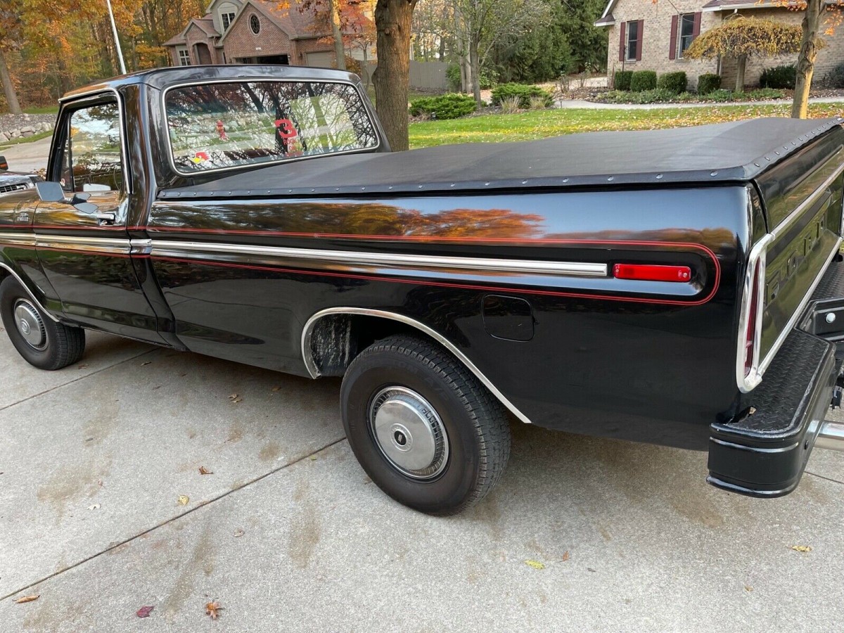 While many of us think of Ford’s compact truck when hearing the name Ranger, it was originally a trim level on the F-series trucks from the 1965 to 1981 model years. (You could also argue that the Edsel Ranger was really the first use of the name by Ford!) This 1978 Ford F-150 Ranger has been owned by the same family since new, and we are told it is mostly used for car shows currently. Apparently, it was repainted around 5 years ago, and even though it was DIY paint job by the owner, the black paint and red pinstriping look great with no visible damage or rust present. Even the underside looks good. The black painted rear bumper with dual exhaust tips gives a nice, slightly aggressive touch to the exterior as well.