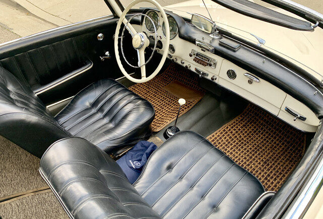 If it’s known, I enjoy reading about a car’s story and background. The original owner must’ve been a romantic because he bought this 190 SL new and gave it to his wife as a Valentine’s Day gift back in 1960. Fourteen years later, it was sold to their daughter, Lori, who used it as a daily driver in college. Shortly after college, she needed a larger car and purchased a Mercedes 300 TD sedan. The 190 SL was then relegated to their garage in Malibu where it was covered and pampered and used as the couple’s “weekend car” for the next 46 years. Sadly, Lori passed away in 2018, and her husband felt it was time to sell the Mercedes as it had become harder to see their beloved car without her in it. It was sold to the current owner in 2019 who has kept it garaged, shown it at a few local car shows, and driven it less than 500 miles.