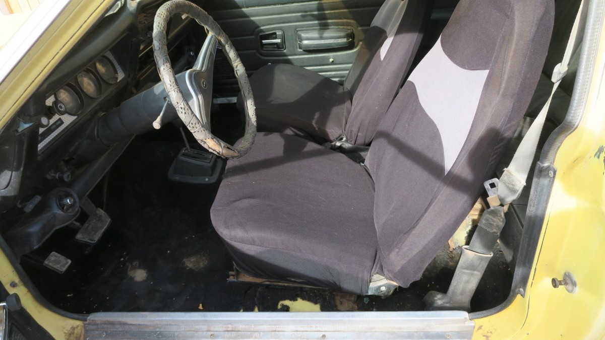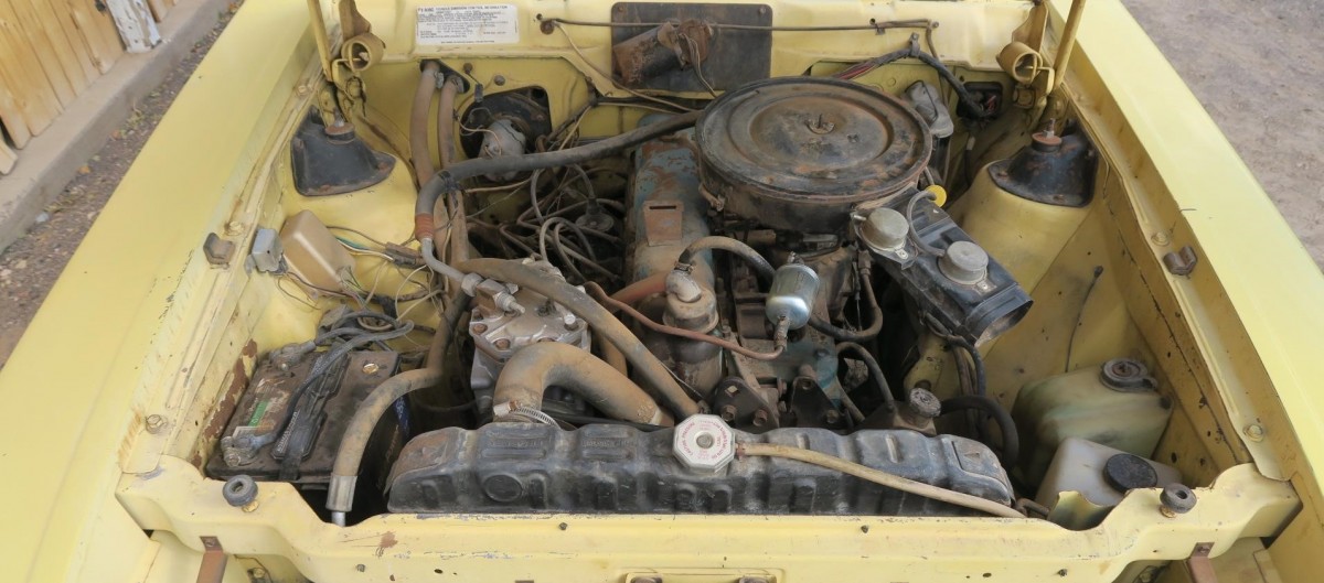 This Gremlin X is one family Arizona car. The engine is said to be strong as is the transmission. There is no smoke or fluid drips, but the exhaust does leak at the donut. If you want to hear it running, check out this video the seller has provided. No issues are reported with the steering (including the power steering pump), suspension or brakes. This Gremlin came with factory air conditioning, but it does not work but is complete. The interior is going to need a lot of attention. The material under the Walmart front seat covers is all ripped up, and the back seat has some separation at the seams. The dash pad is cracked and the radio has been ripped out.