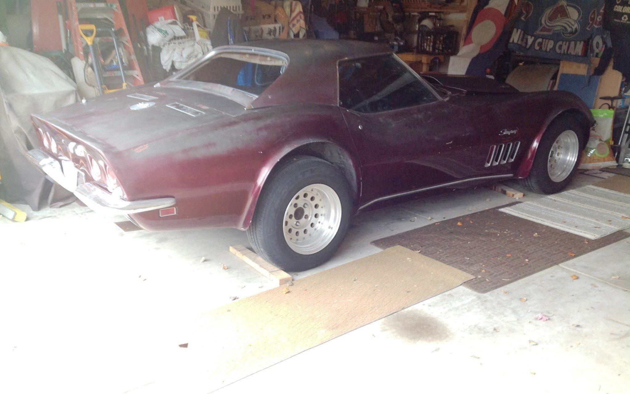 Built in the ’60s, this 1969 Chevrolet Corvette Convertible’s styling spans three decades with ’70s fender flares and ’80s bullethole wheels. The Colorado classic comes to market right here on Barnfinds Classifieds where $35,000 seals the deal. With only a reported 5000 miles on the engine since a 1986 engine rebuild, it’s barely broken in, serving only what the seller calls “Garage Queen” duties since the Reagan years. Of course, any classic should undergo an end-to-end safety check before the new owner gets it into the wind. “New” brakes, according to the seller, should help with that effort. What might be Burgundy Poly paint has worn through to black primer in places, possibly from repeated waxing or buffing. No interior pictures made the listing, but with a claimed 49,000 miles on the odometer, it should look nearly perfect. Purists may suffer a mild stroke at the site of fender flares, and there are plenty of de-flared ‘Vettes out there. Maybe that allows room for someone to fly their ’70s flag high and keep the flares and jacked-up stance without being ostracized from Club Vette.