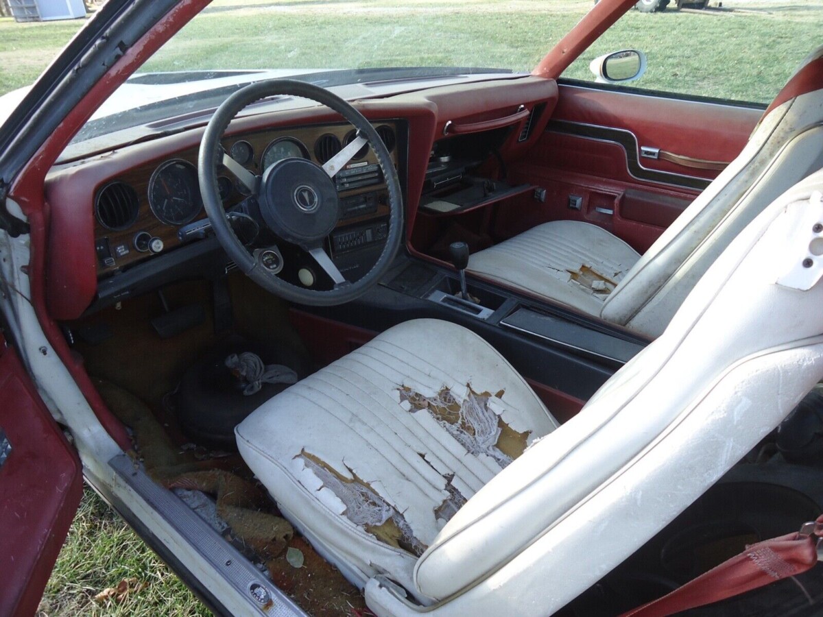 Apparently, the motor and (maybe) the automatic transmission were pulled for a rebuild and sit indoors waiting to go back into the Pontiac when the cosmetic stuff is done. Both are numbers matching and the hood scoop identifies the engine as being the 400 V8 supplied by Pontiac, which went into the majority of the Can Ams. The car comes with some “unusual” options according to the seller, such as BS1 acoustical insulation which is like an extra layer of carpeting on the floors.