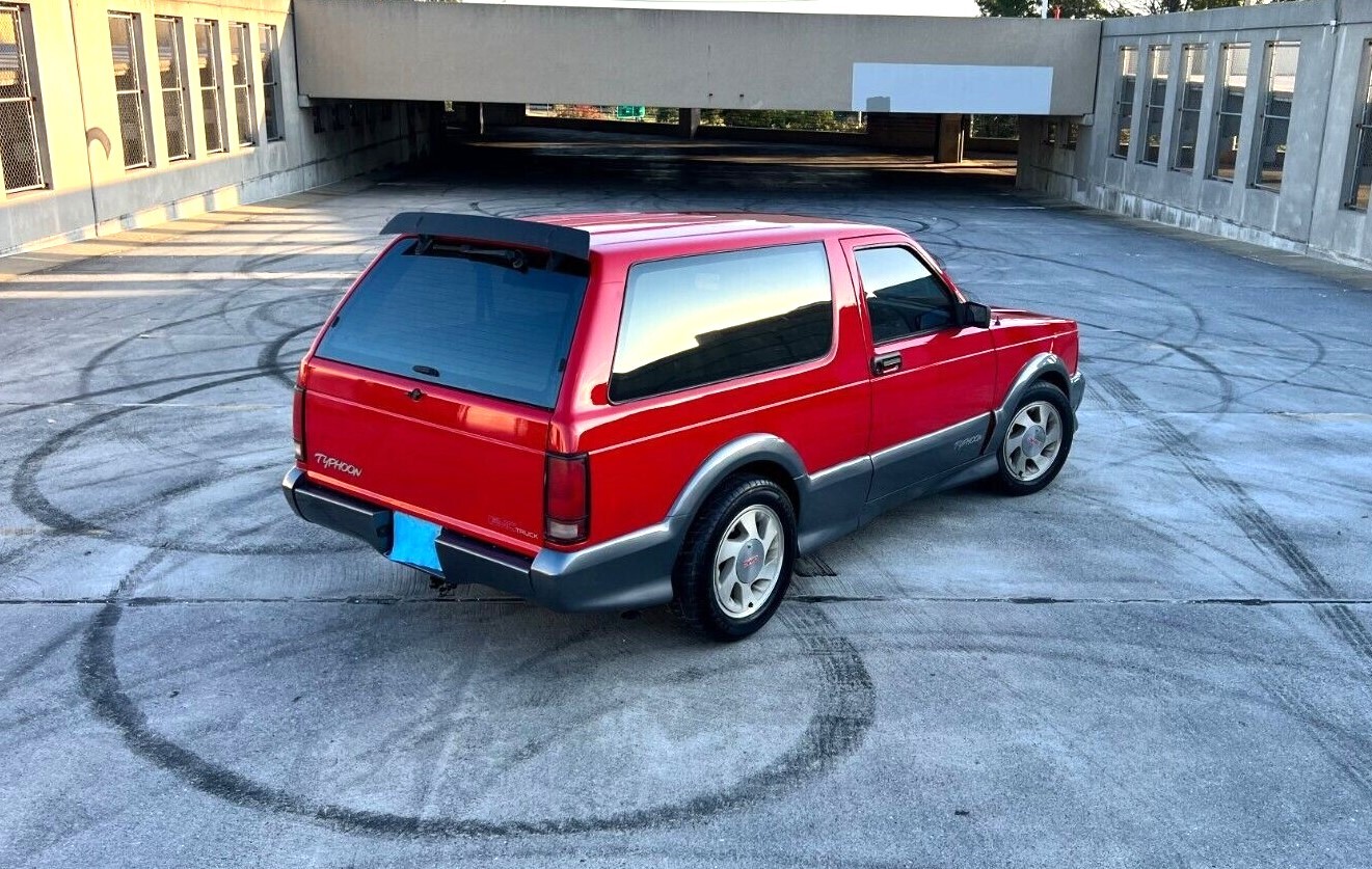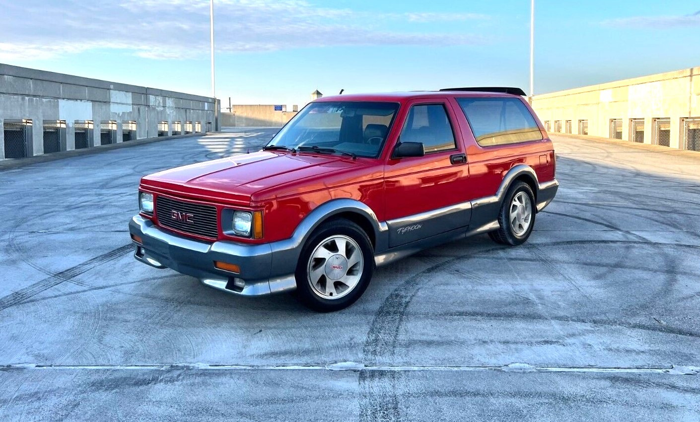 With a turbocharger, the Typhoon generated 280 hp under the hood, along with 360 lb.-ft. of torque. That equated to 14.6 seconds in the quarter mile at 95 mph. It used a modified version of the Vortec engine from other GMC and Chevy trucks and SUVs. It was paired with a 4L60 4-speed automatic transmission. The Typhoon was arguably prettier than the Syclone as it could be had in a variety of colors other than black. The seller’s SUV is one of just 345 built during 1992 with red paint and a gray leather interior.
