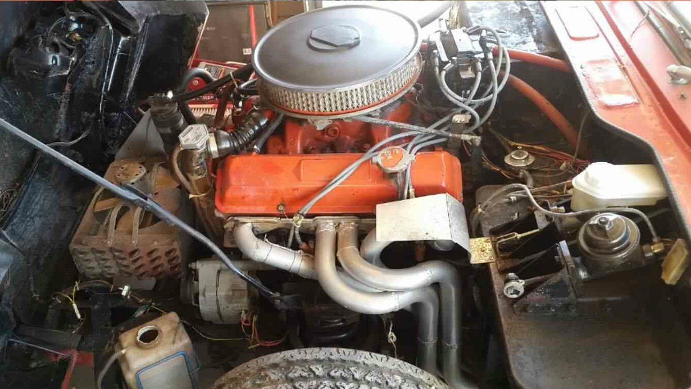 on the plus side…. presumably a period 1966 Chevy 327 motor has some basic value to someone restoring a Chevy of that era and looking for the parts? same for those period alloy wheels presumably….