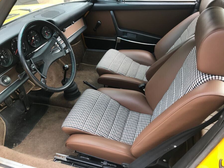 However, when you look at some of the other details, it seems like a safe assumption that this owner or one before him was a detail-oriented caretaker (and you can see the paint did reach into the inside of the doors here). The OEM sport seats are very sought-after, and these buckets have been updated with what is presumably new vinyl and checkered cloth inserts running down the middle of the buckets. The rest of the interior appears to be in good shape, but I will say this color and carpeting makes more sense with the original exterior color; I’d likely retrim the seats in black vinyl and remove the carpets for black as well. The seller notes this Targa has been outfitted with the 915 5-speed manual gearbox.