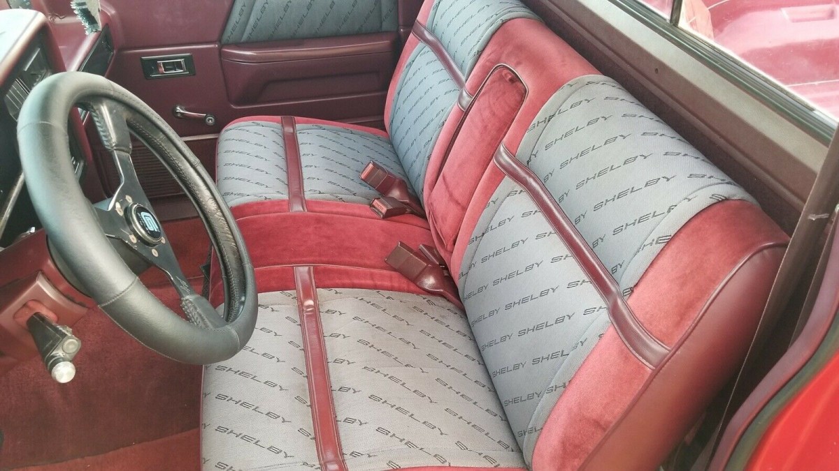 Inside the cabin, there’s a maroon-themed interior with Shelby-labeled upholstery throughout. The truck utilizes a newer stereo system with an auxiliary port and also features the original steering wheel.