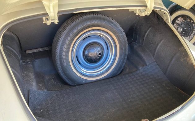 That appears to be what happened to our feature car. It still bears the special gold paint on the hard-to-respray firewall, but the rest of the vehicle is covered in a slightly ivory shade of white. The seller tells us that whoever repainted the car could have used a bit more care. The good news is that it is still presentable, the car is very dependable, and the possibly partially original interior is in fine shape.