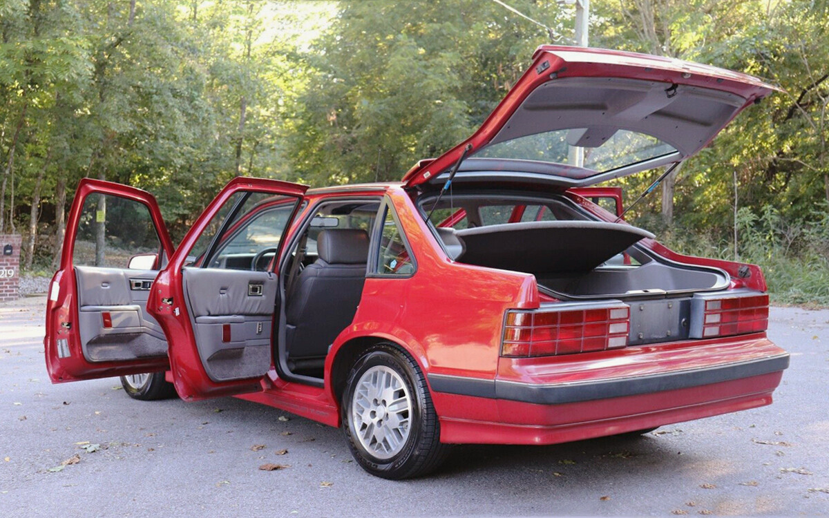 This car has four doors. FOUR. DOORS. Well, actually five doors if a person counts the rear hatchback as a lot of people do. I don’t, so this is a four-door hatchback in my world. This car is from the era when Dodge pretty much owned the turbo world. I’m reasonably certain that they had turbos on their paper towel machines in the employee restrooms. They were everywhere.