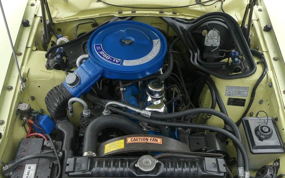 Mom’s ’72 four-door had the exact same engine, and it couldn’t get out of its own way! I particularly dislike the Ford sixes of this era, with the intake manifold cast as part of the cylinder head! So no carburetor upgrades here! This one at least has disk brakes and a power vacuum brake booster, so they have to be better than the manual four-wheel drum brakes on Mom’s example. A/C is a plus, but if the A/C works, what little performance is left in the motor will be devoted to driving the A/C compressor when the A/C is on, LOL! With the A/C running, you don’t time this thing with a stopwatch, you use a calendar, LOL!