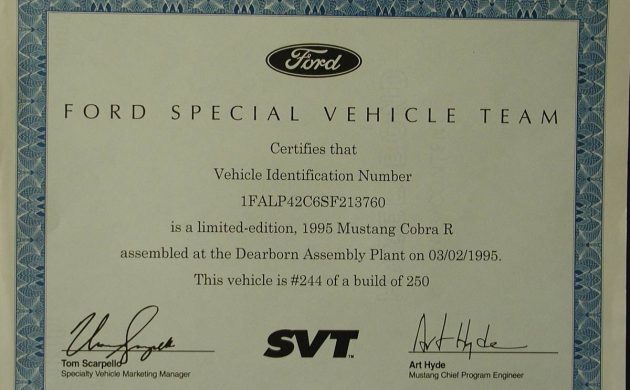 The certificate shown here confirms that this is indeed the limited-production 1995 “R” model that likely is in even shorter supply today than when new if you account for the likelihood of some cars being wrecked or parted out. The SN95-era Cobra has struggled to find respect in the marketplace, no doubt hurt by the fact that its performance wasn’t overwhelmingly superior to the standard GT. This Cobra SVT R makes a more compelling argument for the premium price tag due to its race car personality, and its improved output of 300 b,h.p. and 365 pound-feet of torque. Overall, I suspect it will take an SN95 fanatic to want to pay over $40,000 for a car like this, but I also believe it will be worth every penny when they do. Thanks to Barn Finds reader Curvette for the tip.