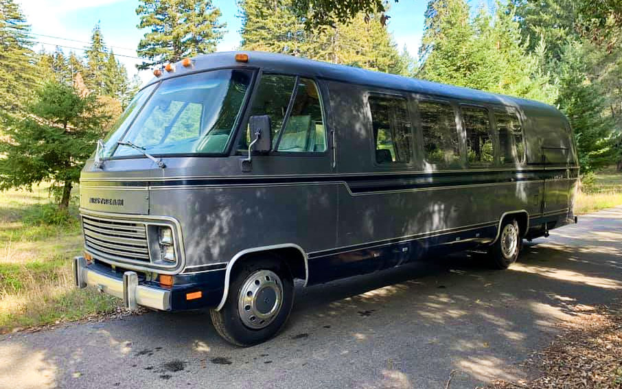The mere minor detail being left out…their “classic RV” is a hearse. Yes, that’s right. Way back in 1979, GMC had just discontinued their revolutionary front-wheel drive MotorHome, and Airstream jumped into the Class A market. Due to a recession and gasoline crisis that had people waiting on long lines to get fuel, their new RV wasn’t selling well. Needing to move units, Airstream diversified and built a couple of executive models: a mobile meeting room known as the Air Coach, and a traveling display unit called the Sales Coach.