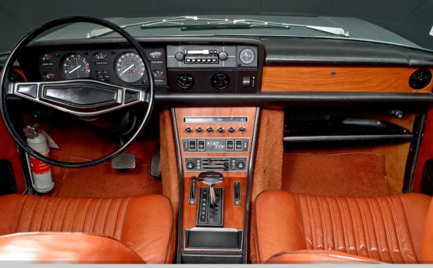 The Fiat 130 followed the 2300, each of them occupying the “executive” luxury niche though the 130 sat on a longer wheelbase and incorporated fully independent four-wheel suspension. The 130’s Tipo B 160 hp 3.2 liter six-cylinder engine is backed by a Borg Warner three-speed automatic transmission. Disc brakes at all four corners finished this upscale package. Post -Agnelli, this car has been kept well-exercised, showing up at several European events.