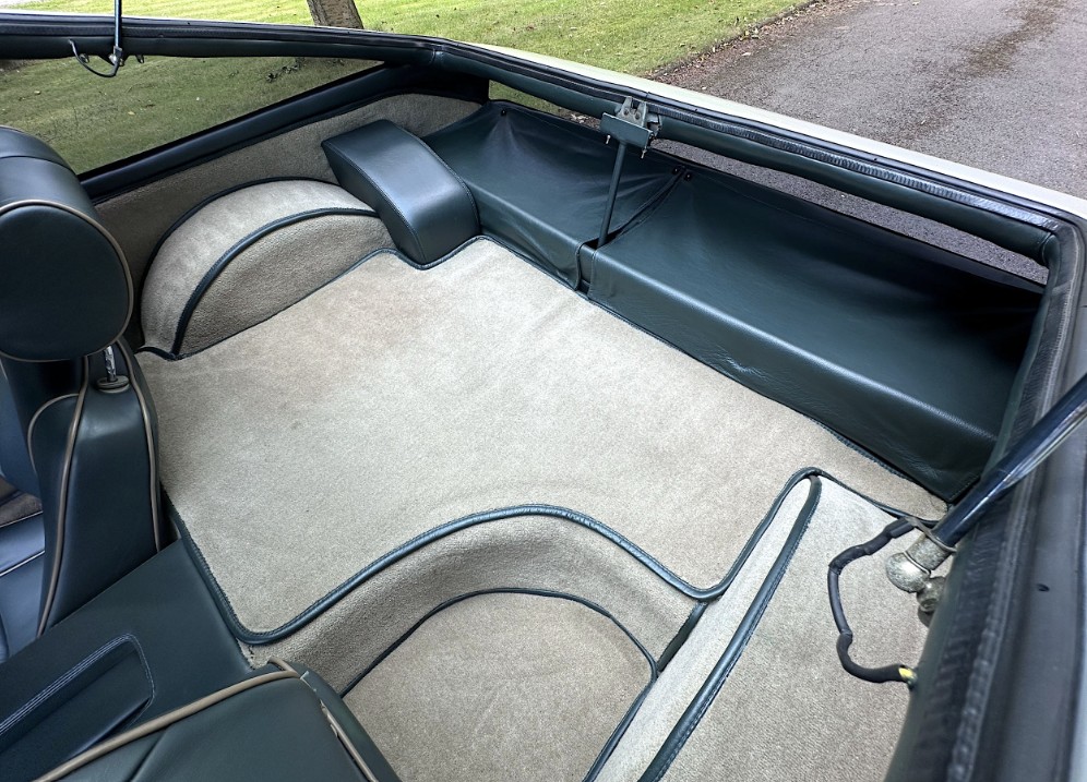 Prospective buyers should note that Peter Wheeler was 6’6″ tall. The seating set-up was customized to his frame. That’s a long reach to the pedals. If you are 5’6″ like yours truly, better hire a specialist to reconfigure the interior. Ned, too, didn’t take to his cubbyhole in the rear; like all dogs, he preferred to sit up front with his owner. Outside of the dimensions, the car is appropriately luxe inside, with piped green leather upholstery, wool carpets, and walnut dash trim.
