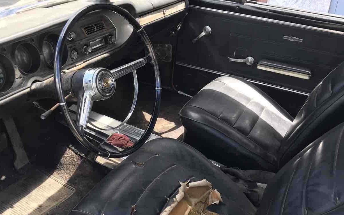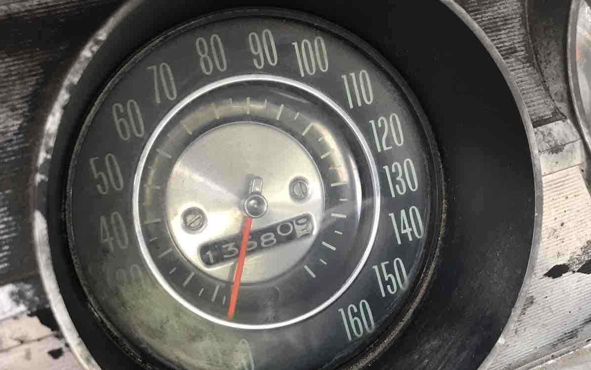 The interior is about as you would expect it, it’s a bit rough but not too terrible. The driver’s seat is done and the dash pad is cracked but the rest of it is in reasonable shape. The plastic instrument panel bezel is dechroming itself, a common issue with age, but it can be replated or replaced. Most importantly, the rare 160 MPH speedometer, a Z16-only item, is still in place. And, the dealer-installed A/C, added in 1966, is evidenced by the instrument panel vent.