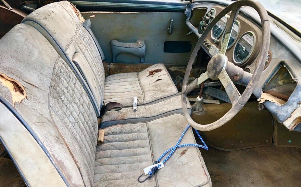 This original condition, aluminum-bodied, DB2 still has its build sheet and is recently out of long-term storage. The body is a bit rough, showing evidence of what looks like Bondo in places, though the body panels appear to be mostly straight. While the body may be aluminum, the rocker panels would seem to be made of steel, there is quite a bit of surface rust showing below the doors with rust-through on the left side panel. Of concern, is the missing trim, pieces like the bumpers and grille surround, it doesn’t sound like they are available with the sale.Β There is no mention regarding underside integrity but based on the topside appearance, it would warrant a full inspection.