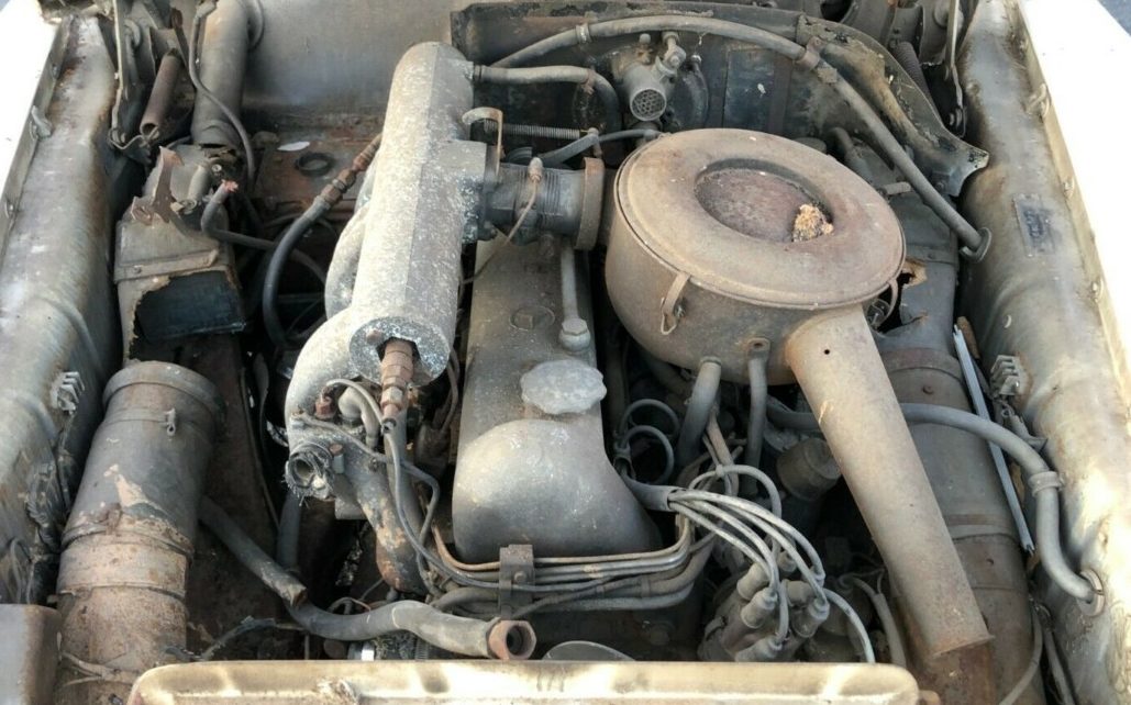 Not surprising, this Mercedes’ 2.2 liter, in-line six-cylinder engine is non-running but it does turn over. The seller states that “it will need to be gone through”. There’s that blasted “gone through” term again. Translation: The motor will need to be pulled and completely rebuilt. When running, this 2.2 is good for 115 HP and drives through a four-speed manual transmission. Mercedes was known for its “Four on the tree” shift assemblies. The seller also mentions that he has pulled the radiator due to its rotted condition; I guess the new owner will be on their own to find another.
