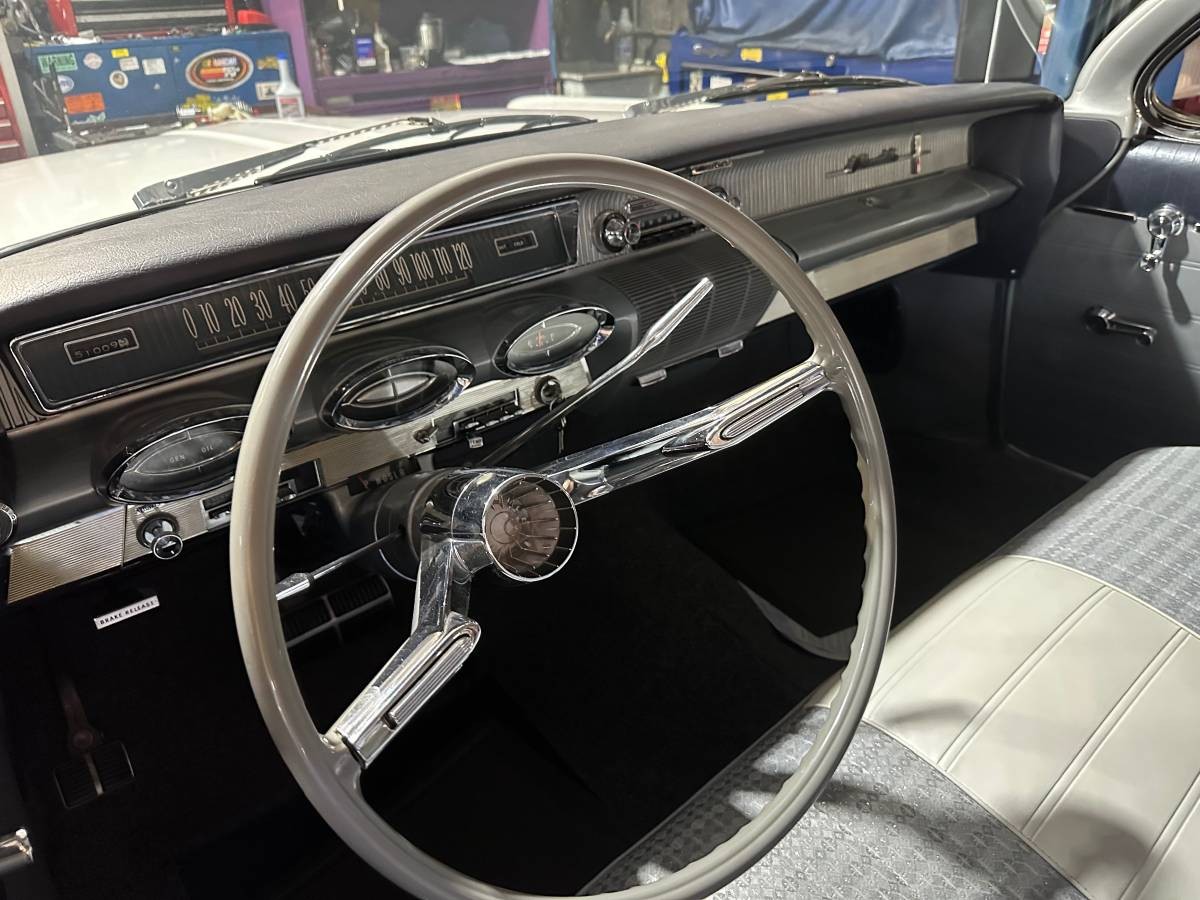I’ve always felt like the 61 olds had a sort of “futuristic” look about it that I like, even though the 60 model is high on my list of favorites. I’m not sure if Olds continued the same protocol in 61, but I know that for the 60 Olds, the Dynamic was supplied with the 371 engine, while the Super and the 98 came with the 394. Even though I don’t like white for cars, this is a very impressive original that has been obviously cared for. The 3 oval gauges are really classy.