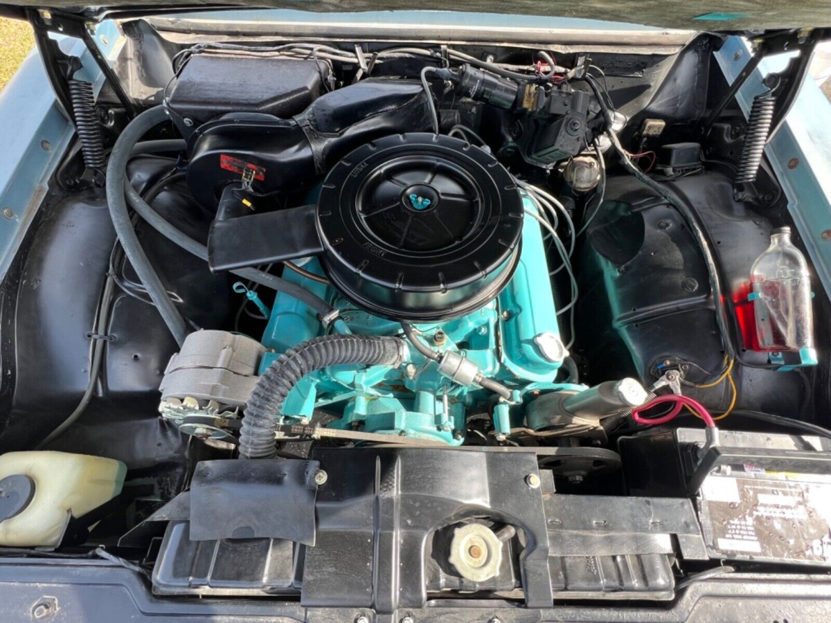 The high-compression iron block 326 cu. in. V8 came equipped with a two-barrel carburetor (darn, because the Trophy 4 had a four-barrel!) That horsepower rating of 260 helped the car hustle down the highway. Unfortunately, the available four-speed manual was not redesigned for the V8’s higher torque, so most cars were ordered with the TempesTorque two-speed automatic, like this example. This car was used as a daily driver by its original owner, then parked in 2008; with fresh fluids and a tune-up, she was started up this month and runs well, as she should: the motor has less than 1000 miles on a complete rebuild. The transmission is said to shift well. The tires are old and should be replaced before you motor too far, however.