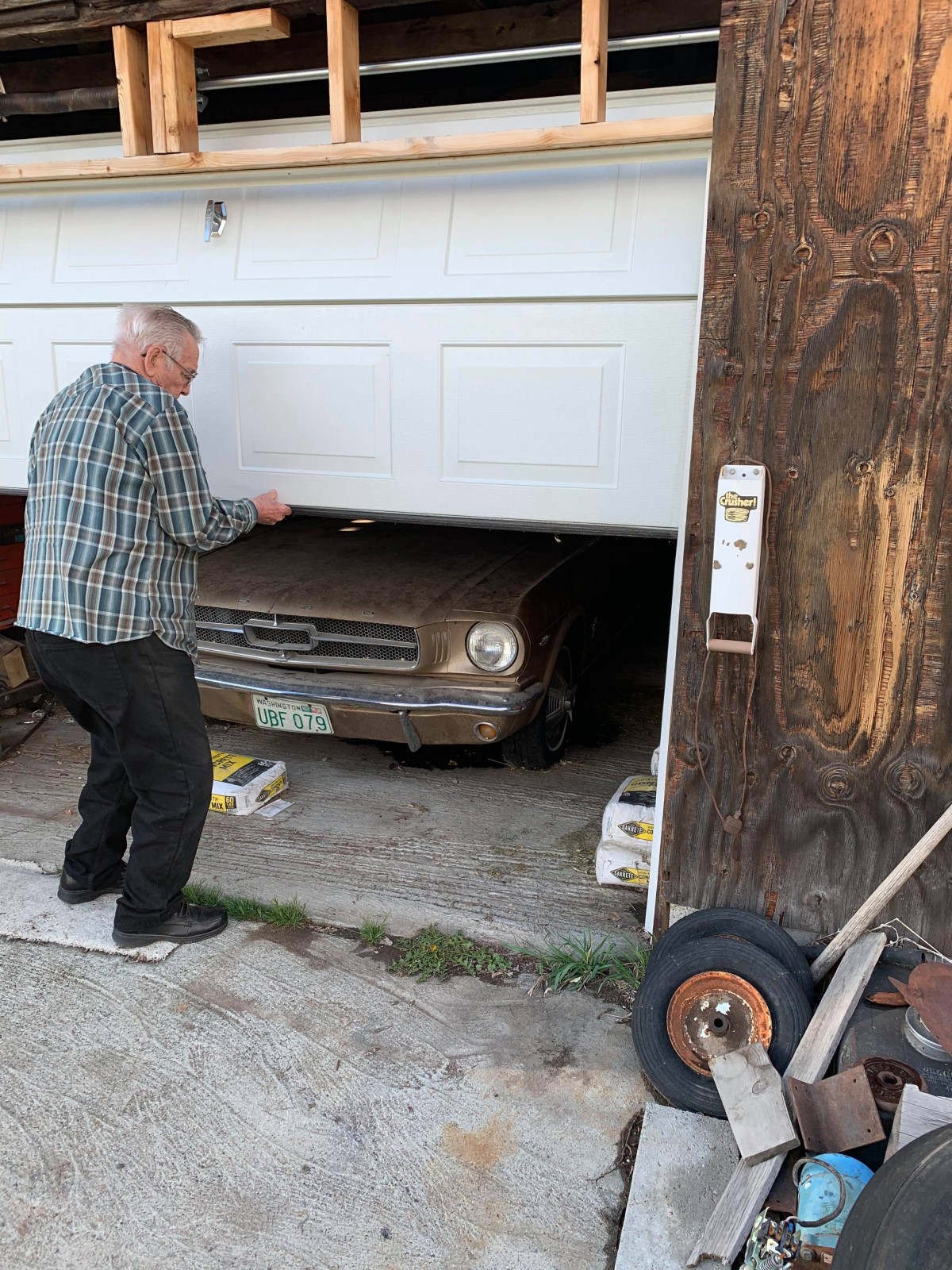 Nothing better than an old man opening an old door to reveal and old car…..