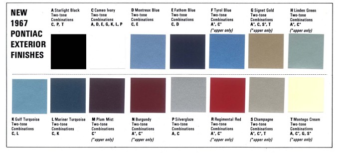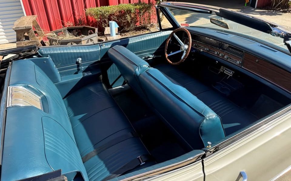 The color combination is striking, and maybe a bit unusual; the exterior color looks like Code P “Silverglaze,” which was one of five colors that Pontiac recommended when a customer ordered a blue interior. Pontiac did marketing better than any other brand in the 1960s, so they didn’t call this vinyl interior a vinyl interior: Oh no, it’s “Morrokide.” To be fair to the other divisions, they too had special marketing names for it, but somehow “Morrokide” is the most memorable.