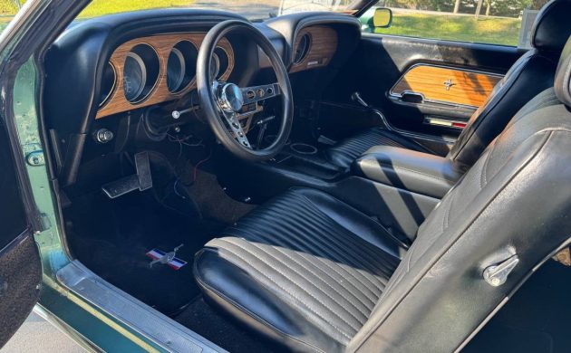 Although sales volumes were down in 1969, it proved to be a significant period in the First Generation Mustang’s life. New for this model year were the Mach 1 and Boss variants, designed to appeal to those with serious performance leanings. At the other end of the scale, the release of the Grande signalled that Ford was keen to capture buyers who may have gravitated towards the more luxurious Mercury Cougar. This package brought additional sound-deadening material and a fairly plush interior compared to the entry-level offerings. This ’69 Grande is a one-owner classic that left the line finished in Silver Jade Metallic with a Black vinyl top. The seller confirms that it underwent a repaint approximately twenty years ago, and the lack of deterioration suggests that the work was performed to a high standard. The Silver Jade shines beautifully, the panels are free from major imperfections, and the vinyl is in as-new condition. The seller describes the car as “90% rust-free,” which may indicate issues that aren’t visible in the supplied photos. They assure us that the floors are good and the trunk is perfect, raising the question of where the rust might be. There are no shortcomings with the trim and glass, and the Grande rolls on a set of wheels sourced from a Mach 1. However, the original wheels are included if the buyer wishes to reverse the change.