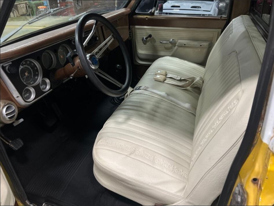 The seller states this Pickup is a one-owner classic, and its overall appearance suggests it has never undergone any restoration work. Its Code 536 combination of Ochre and White provides a striking appearance, although the paint is wearing through in various spots. It would benefit from a light cosmetic restoration, but the lack of bare metal makes preservation as a survivor a valid approach. The panels are surprisingly straight for what many consider a workhorse, and while the bed has plenty of scratches and a consistent coating of surface corrosion, there is no evidence of the damage typically associated with abuse. Rust is always a consideration in vehicles of this type, but there is nothing present that would cause nightmares. The panels, including the lower cab corners, are clean. The underside shots reveal nothing beyond the occasional spot of surface corrosion, confirming this classic is rust-free. The trim is all present and in good order, and there are no issues with the Soft-Ray tinted glass. The Pickup rolls on larger 17″ Custom Truck wheels wrapped in new tires from BF Goodrich. However, reversing this change for authenticity would not be difficult or expensive.