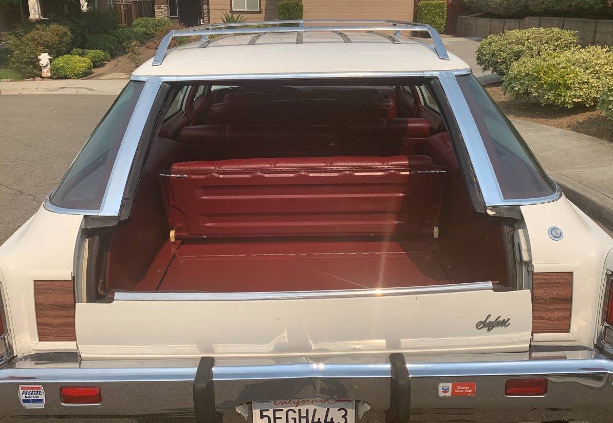I think I had a 75 impala clamshell wagon. Not sure of the year, i might have new an earlier model. 350 4bbl, thm400, but single exhaust. Air shocks, and 8 track that I screwed onto the trans hump. Cream on beige vinyl. I sure wish I had it now. Talk about a sleeper. We could fit three overnight. I never had a problem with the power clamshell. I thought it was so cool.