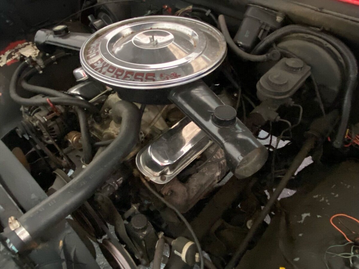That one also has the wrong type oem wheels on it. They originally came with OEM 15″x8″ chrome slotted wheels with Goodyear Eagle 275/60R-15 rwl tires. The original interior was never 2 toned. Most Lil Red Expresses and Warlocks came with factory bucket set with a fold up center jump seat…however this was an option. The Lil Red came with a 727 automatic and a 3:55 limited slip diff.