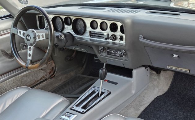 Buyers ordering a ’79 Trans Am 10th Anniversary Edition could choose from two engines to power their new purchase. Only 1,817 buyers selected the company’s iconic 400ci V8, teamed with a four-speed manual transmission. The remaining 5,683 drove away with the “Olds” 403ci V8 under the hood. Ordering the 403 brought no manual option, with buyers receiving a three-speed Hydramatic transmission and power-assisted steering and brakes. There is plenty of good news for potential buyers, because this classic is in excellent mechanical condition. The listing indicates a potential odometer reading of 67,000 miles without mentioning verifying evidence. However, the car runs and drives beautifully, allowing the buyer to fly in and drive it home.