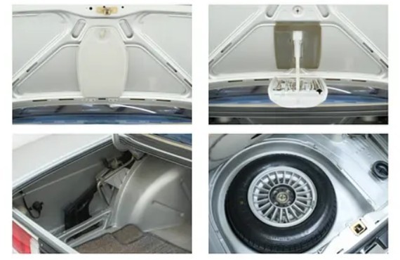 Inside, slight wear shows up on some surfaces, but nothing egregious. The manual-wind sunroof works, the glass is good, and the trunk contains the original tool kit and spare. The original Blaupunkt is still installed, and a radio blanking plate was found in the glovebox. Manuals, original documentation, and unused inspection stickers accompany the car. The seller notes that the factory Behr air conditioning system is with the car, but those units are not known for reliability.